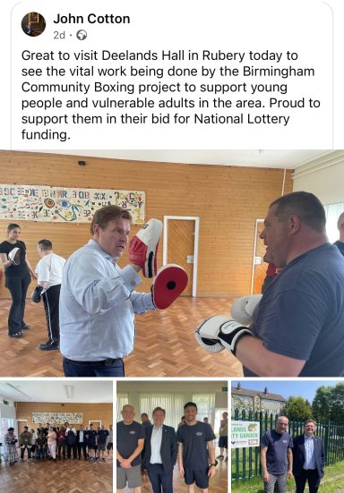 John Cotton, the leader of Birmingham City Council paid a visit to our vulnerable adults boxing class at Deelands Hall on Thursday June 19th.