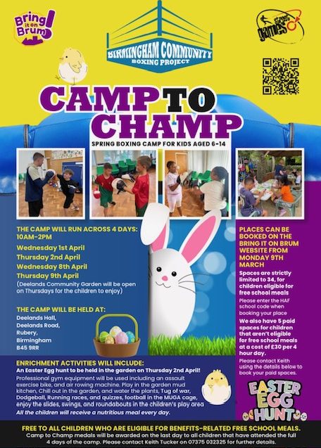 We were delighted to be approved for funding by StreetGames to deliver our first HAF camp of 2026. Over the course of 4 days, children aged between 6 and 14 will be taught the fundamentals of boxing. Other enrichment activities will include Football, Cricket, Basketball, Dodgeball, Tug of war, Skipping, Reaction Games, and quizzes. The children will also get to use professional gym equipment including an assault exercise bike, and air rower.