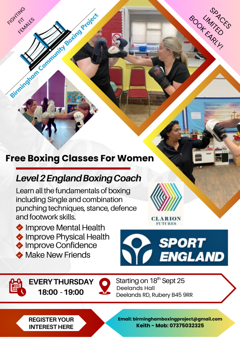 We were delighted to receive funding from Sport England to run women only boxing classes in Rubery and Bartley Green. These sessions have been oversubscribed proving that there isn't enough safe spaces for females to attend to improve their overall mental and physical health.
